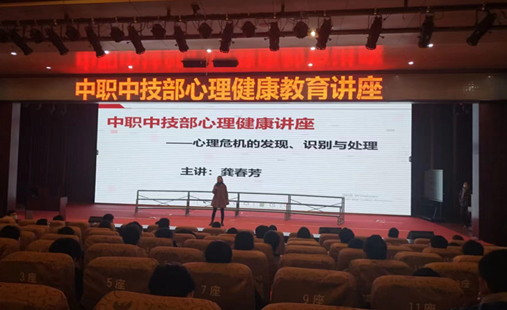 此次讲座由中职中技部心理健康教育教师龚春芳主讲,中职中技部心理委员及寝室心理联络员300余人参加。