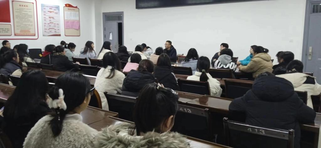 本站讯(护理学院 陈丽红)为进一步加强心理健康教育队伍建设,提高心理保健员工作能力,安排部署新学期心理健康系列工作,2月13日晚,护理学院在和济楼C218会议室召开新学期心理保健员会议。会议由护理学院院长吴少林主持。心理健康教育辅导员陈丽红老师及各班心理保健员参会。