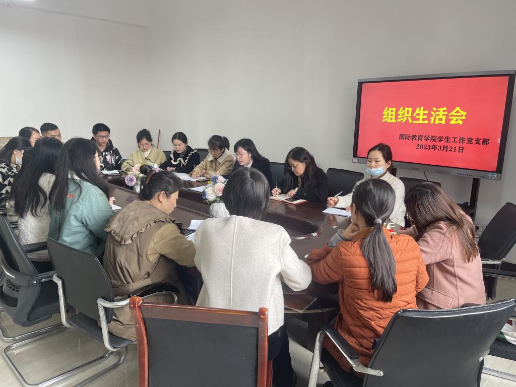 本站讯(国际教育学院 刘洋倩)3月21日下午,国际教育学院教师党支部和学生工作党支部分别在博达楼B502和B501开展2022年度组织生活会,并进行民主评议党员,会议由各支部书记主持,校党委委员、副校长刘江毅到会全程督导。