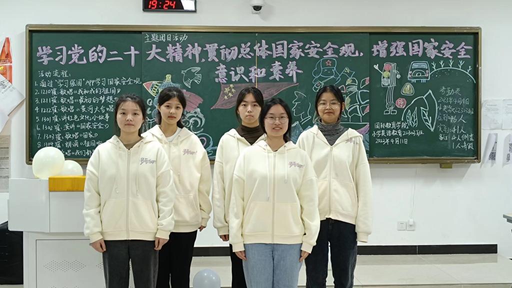 本次主题团日活动形式丰富多样,有的班级集体学习习近平总书记关于坚持总体国家安全观的重要讲话,深化国家安全意识;有的通过观看“学习强国”APP关于全民国家安全教育日的介绍视频,交流讨论国家安全的重要意义;有的通过图示讲解,一起学习国家安全的具体内涵。经过评比,小学英语教育22303班荣获本次主题团日活动一等奖。