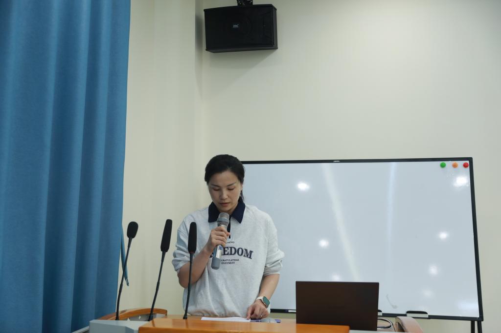 仪式上,心理健康教育中心主任席梦婷推荐好书,资助中心副主任陈雪莲宣读活动方案。