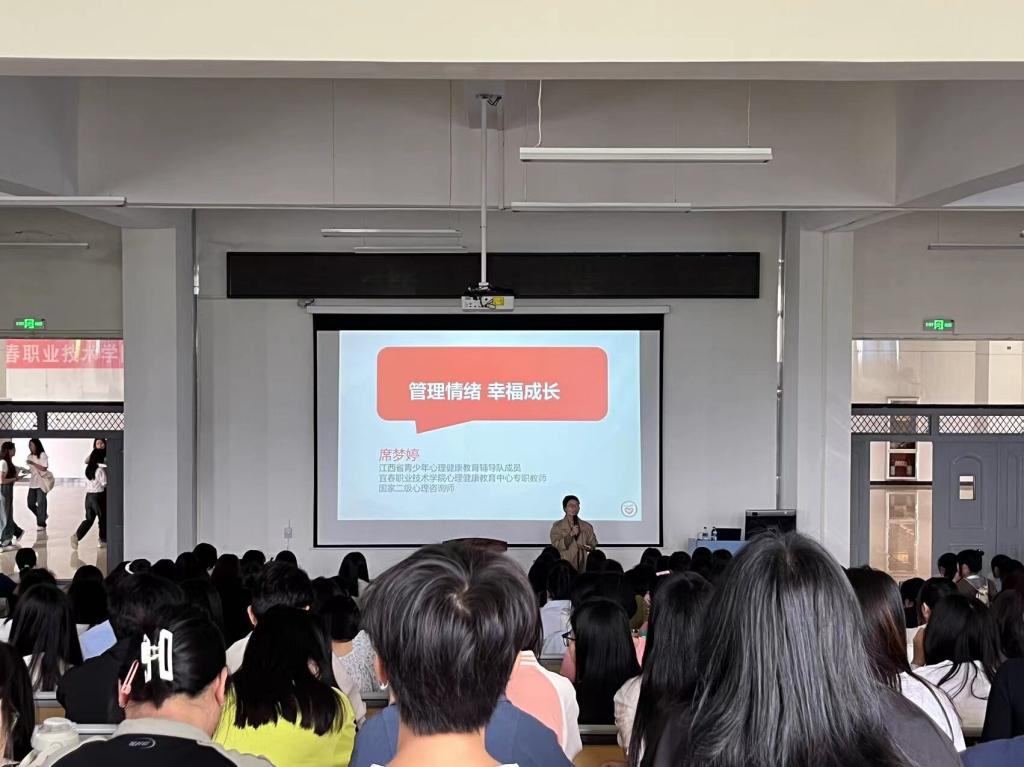 本站讯(师范学院 李静)为贯彻落实习近平总书记关于学生心理健康教育的重要指示精神,进一步关心关爱学生心理健康成长,4月19日上午,师范学院在正心楼阶梯教室举办“管理情绪 释放压力”心理健康讲座。此次讲座由江西省“万师润万心”心理健康大行动讲师团成员、国家二级心理咨询师席梦婷授课,师范学院近300名学生参加讲座。辅导员李静主持讲座。