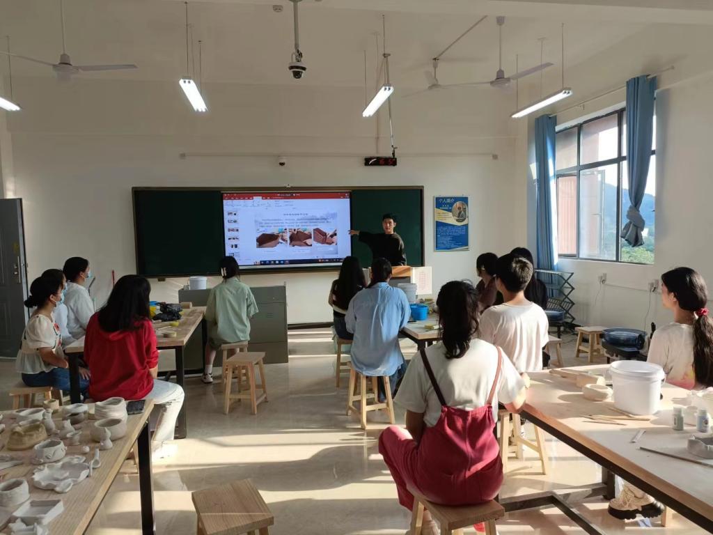 本次课程由吴文来老师组织,在课程开始前,吴文来向学生们介绍了中国陶瓷文化和现代陶艺史以及基本陶艺工具使用方法,随后组织学生开始陶艺实践。在实践的过程中,学生们不断调整手势和技巧,不断尝试新的设计,以达到更好的效果。在整个上课过程中,吴文来一直耐心指导学生们,鼓励他们尝试不同的设计和造型,帮助他们解决实践中出现的问题。学生们也非常积极参与,他们互相帮助、交流,分享自己的心得体会。最后,学生们展示了自己的作品,如茶壶、杯子、盘子、碗、笔架、动物雕塑等。这些作品不仅造型精美,而且每个作品都有自己独特的艺术风格和意义。