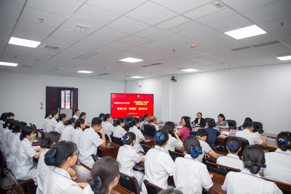本站讯(护理学院 李辉员) 5月31日,英国上市公司365与泰康健康产业投资控股有限公司签订“泰康班”订单班培养协议。泰康之家•赣园的康复医院护理副院长马向鹰、人力资源总监谭蓉、人力资源主管涂文艳一行3人,英国上市公司365副校长易滨秀,招生就业处处长彭艳飞、社会合作办主任王军民以及护理学院院长吴少林、党总支副书记曲晴、教师代表和智慧健康养老服务与管理21301班全体学生参加。签约仪式由王军民主持。