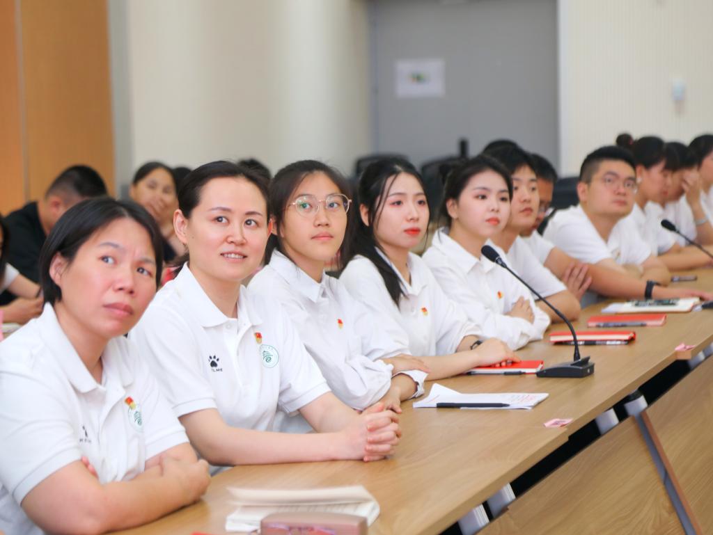 本站讯(护理学院 陈丽红)为深入学习宣传贯彻党的二十大精神,深刻领会习近平新时代中国特色社会主义思想,激励广大党员坚守教育初心,做新时代“四有”好老师,6月16日下午,护理学院党总支在天工楼学术报告厅开展“以党的二十大精神引领护理高质量发展”主题党日观摩活动。机关党委专职副书记龚莎,学校各基层党组织代表到场观看。活动由护理学院党总支书记胡蓉主持。