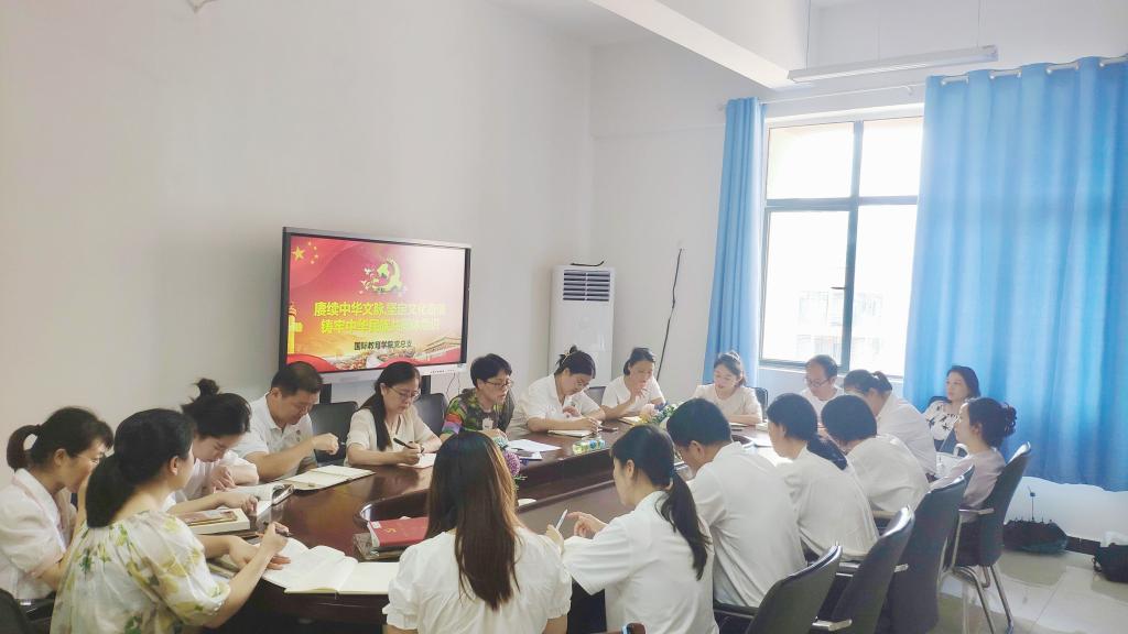 本站讯(国际教育学院 刘洋倩)6月28日,副校长刘江毅同志以“赓续中华文脉 坚定文化自信 铸牢中华民族共同体意识”为主题,为党总支所有党员讲授了一堂干货满满的党课。