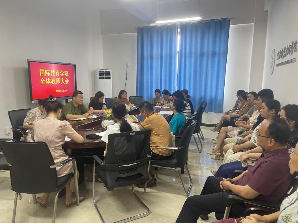 本站讯(国际教育学院 颜灵仪)6月30日下午,国际教育学院在博达楼B501召开了全体教师大会,会议由党总支书记刘海云主持,学院全体教职工参加会议。