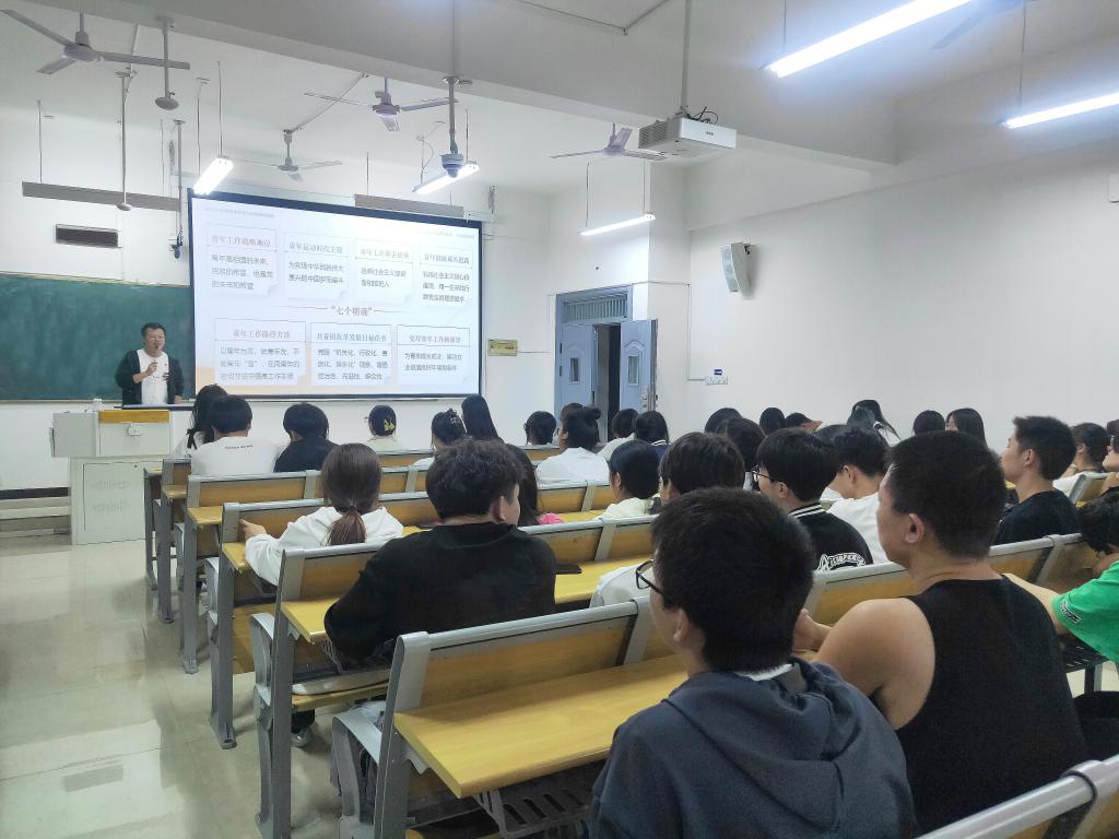 本站讯(信息工程学院 易文意 黄彪 学生记者 苏宇菲)旗帜指引方向,核心领航未来。10月18日,信息工程学院青年志愿者协会邀请马克思主义学院张保揭老师在和济楼C304开展“燃志愿荧光,耀时代征途”主题授课。