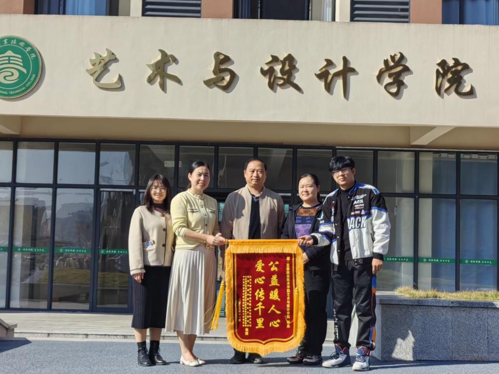 本站讯(艺术与设计学院 彭海艳)11月22日,都市春天社区负责人向此前参与“彩色文化墙绘,绘就美好社区”公益主题党日活动的艺术与设计学院致以敬意,相关负责人将锦旗交到了院长黄卉手中。