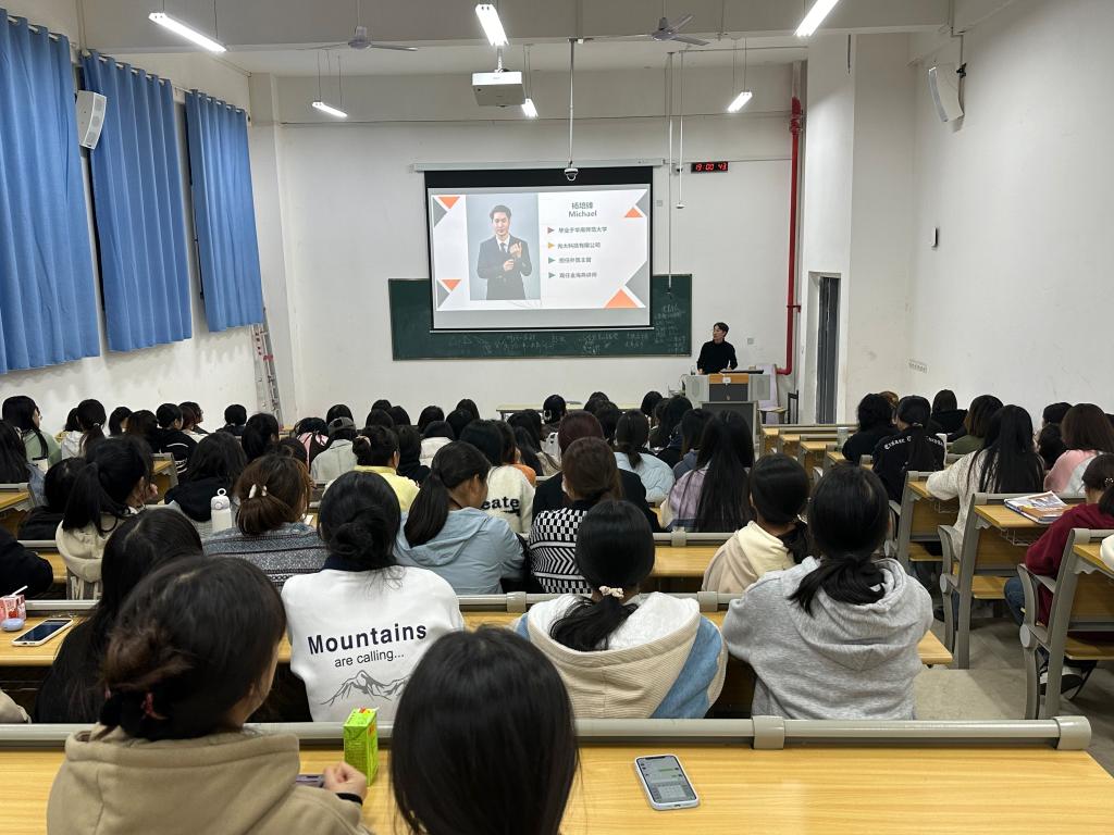 本站讯(国际教育学院 杜欣宇)为持续推进实习就业工作,让学生深入了解实习就业内容,11月22日,国际教育学院在博达楼B101开展实习就业指导与专场招聘会,学院应用英语专业全体学生参与。此次专场招聘邀请到广东中山金海燕进出口服务有限公司,企业招聘负责人介绍公司发展情况、岗位需求和薪酬福利等信息,并与有意向同学进行面对面交流。