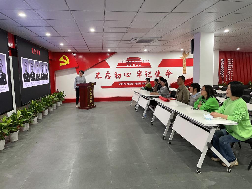 刘江毅为党员们上了一堂“缅怀英烈——致敬平凡而又伟大的英雄周鹏”党课,她深情讲述英雄周鹏的生平事迹。周鹏来自于革命烈士家庭,在先辈们的影响下,他高中毕业后坚定地选择穿上戎装,当了一名消防战士,然而2019年四川凉山突发一场森林大火,他为救火献出年轻宝贵的生命,周鹏用实际行动赓续红色血脉,传承建党精神。这些年,刘江毅每年都会带领四川凉山的同学们来水江祭扫缅怀周鹏烈士。