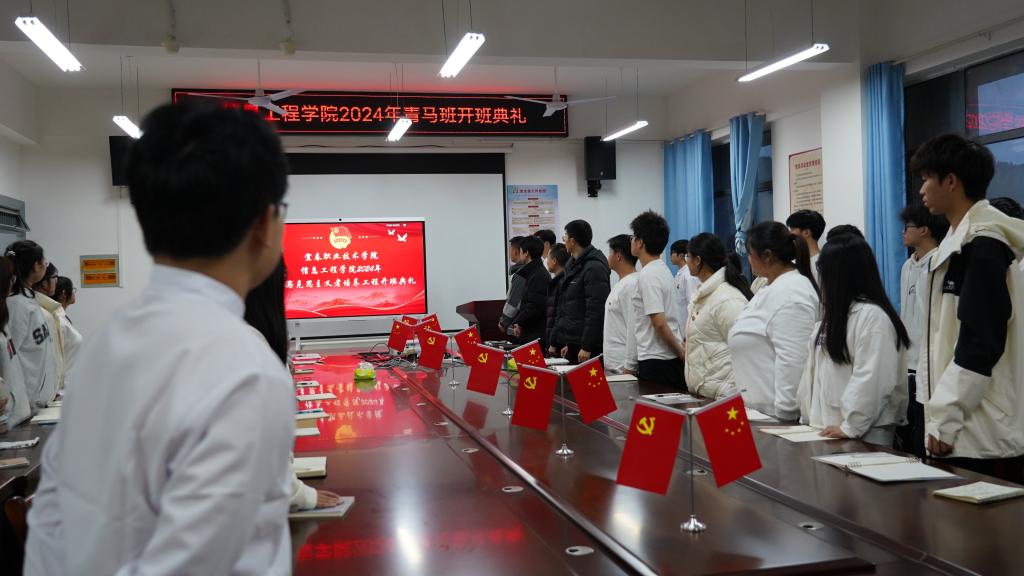 本站讯(信息工程学院 黄彪)为扎实推动“青年马克思主义者”培养工程的深入实施,3月18日,信息工程学院2024年青年马克思主义者培养工程大学生骨干培训班开班仪式在智云楼B501举行。党总支书记罗来曦,学工负责人李纪杨,辅导员黄彪、张为岷以及35名学生代表出席开班典礼。学员刘义翔主持典礼。