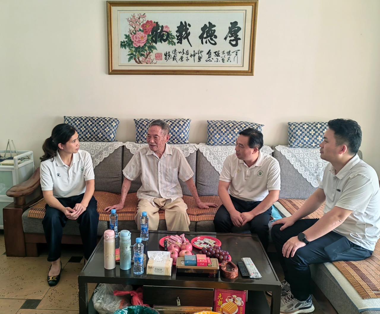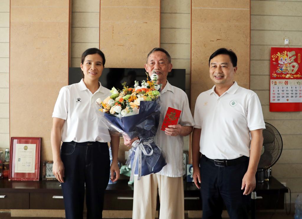 升旗仪式结束后,支部党员代表走访慰问参加过抗美援朝战争的老党员刘玉美同志,并送去鲜花和慰问金。他为我们讲述了参加抗美援朝时一位光荣战士未寄出的一封家书背后的故事,那段峥嵘岁月值得大家永远铭记。