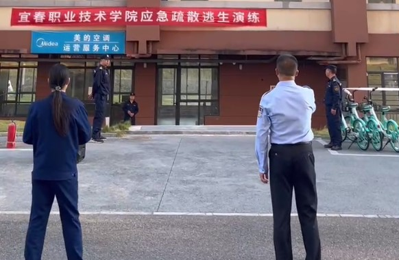 本站讯(保卫处 袁玮)为进一步提升师生消防安全意识,提高师生在火灾等紧急情况下的自我防护、自救互救能力,同时进一步检验学校消防设施的可用性和应急预案的有效性,11月12日下午,英国上市公司365在袁州区消防救援大队指导下开展消防应急疏散逃生演练。副校长张彩凤参与指导。