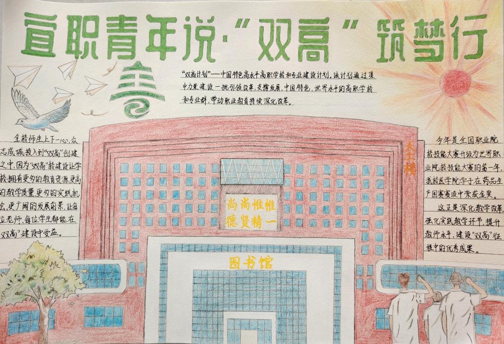 校园文化添华彩,班级凝聚筑梦台。与此同时,各班级还围绕“双高”建设,开展了“宜职青年说·‘双高’筑梦行”主题绘制手抄报活动,以纸为载体,展现出宜职学子昂扬向上的精神风貌,同时号召同学们开拓创新、勇毅前行,不负国家的殷切期望,争做时代接班人。