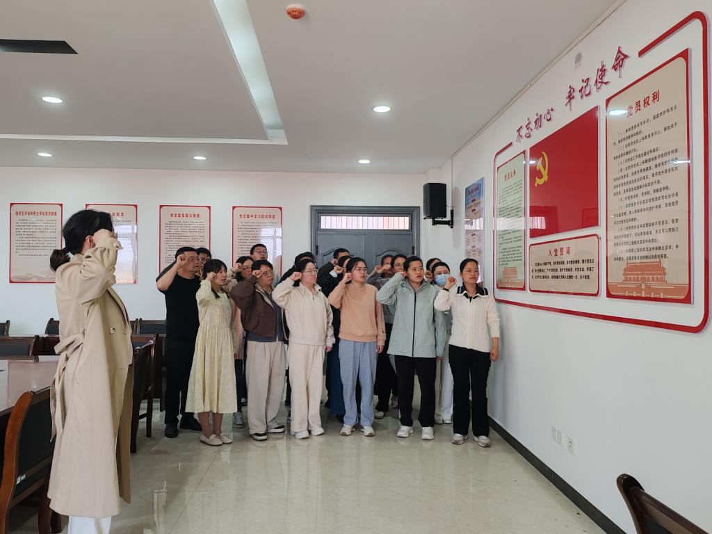 党支部为第一季度入党的周星同志举行政治生日。支部书记为其发放政治生日贺卡,并寄语:"要始终牢记入党初心,把政治生日当作新的起点,以更高标准践行党员义务。"周星同志发表感言:"政治生日让我深刻感受到组织的关怀,将以实际行动发挥先锋模范作用,为支部建设贡献力量。"在庄严的党旗下,全体党员重温入党誓词,铿锵有力的宣誓声响彻会场。