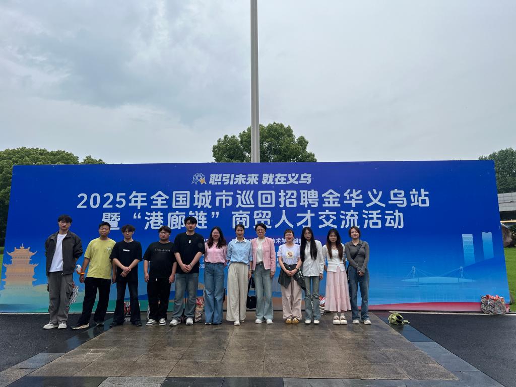 本站讯(经济管理学院 马思源)4月22日,在刘江毅副校长的带领下,经济管理学院党总支书记邓晶、辅导员潘骁哲、马思源及25届电子商务专业学生代表,前往义乌工商职业技术学院,参加“职引未来——2025年全国城市巡回招聘金华义乌站暨‘港廊链’商贸人才交流活动”。