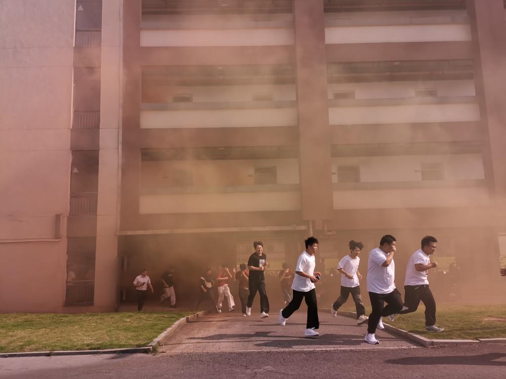 本次演练采取“无脚本、突发式”模式,模拟学生公寓突发火情场景。随着模拟警报拉响,党支部迅速启动应急预案,支部党员立即响应,组织师生沿预定疏散路线撤离。演练过程中,师生全程保持低姿、捂鼻、快速有序,顺利完成全员安全疏散。