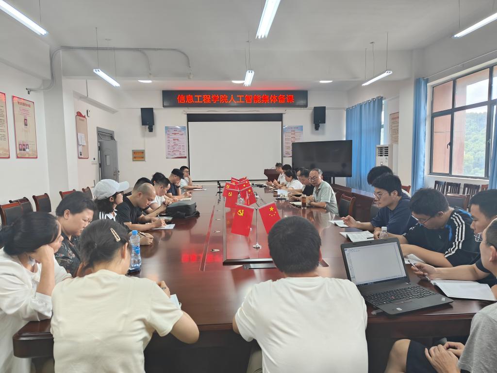 本站讯(信息工程学院 王乐)为提升人工智能通识课的教学质量,助力学生更好地理解和掌握人工智能知识技能,5月20日下午,信息工程学院在智云楼B501组织开展人工智能通识课集体备课。本次教研活动由院长简靖韡主持,校党委委员、纪委书记刘平涯出席,全体教师参加会议。