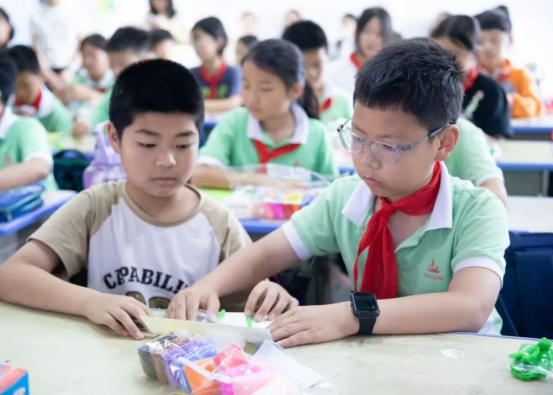 在五年级3班,师范学院教师廖雪韵正和孩子们一同“耕种”黏土花园。在她的指引下,孩子们将一块块黏土或捏、或揉、或团成条状的花枝、缤纷的花瓣、嫩绿的花叶……色彩斑斓、形态各异的花朵在孩子们的手中渐次绽放,春天仿佛被搬进了教室!