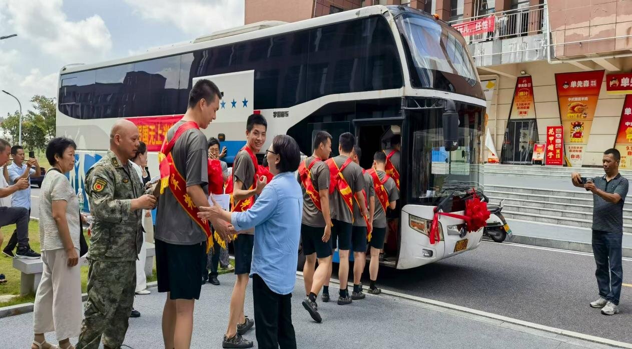 党委委员、副校长张彩凤致辞。她首先向光荣入伍的学子们致以崇高敬意,向培养了新时代热血儿女的家长们表示衷心感谢。张彩凤强调:“同学们携笔从戎、报效祖国的选择,彰显了新时代青年的责任与担当。希望大家牢记‘尚德尚贤、惟精惟一’的校训,在军营中锤炼钢铁意志、练就过硬本领,将‘知行合一’的担当融入保家卫国的实践中。”同时,深情嘱托新兵学子,学校将始终是各位的坚强后盾,会持续关注大家的成长与发展,并祝愿每一位新兵学子“征程万里风正劲,奋楫扬帆再出发,早日建功军营,为母校争光!”在张彩凤热情洋溢的致辞后,全体参会人员与新兵们共同合影留念,镜头定格下这一庄重而温暖的时刻。欢送会结束后,新兵们身着崭新军装,胸戴大红花,在热烈的锣鼓声中登上送兵专车。家属与老师们挥手送别,现场洋溢着“一人参军、全家光荣”的自豪感。新兵们纷纷表示,将不负学校与家人的期望,在军营中刻苦训练、忠诚履职,用青春热血书写无悔篇章。