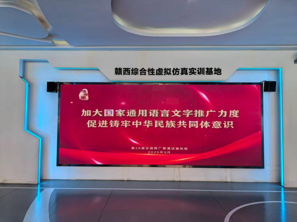 活动注重创新与实效,依托校园内赣西综合性虚拟仿真实训基地,构建了全新的推普宣传场景,学生们在3D影像与VR穿戴设备构建的虚拟世界中,通过游戏互动获得沉浸式体验,实现了寓教于乐,让推普宣传入脑入心;机关第五党支部实施“党建+推普”机制,组织支部党员和普通话测试员共同走进对接班级,大力宣传,发挥了党员的示范作用和专业人员的指导作用;师范学院组织师生前往九江市庐山市温泉镇通书院村开展“同讲普通话,助力新农村”暑期“三下乡”社会实践,将推普工作从校园延伸至社会,服务乡村振兴;此外,学校还积极组织师生参加推普周江西重点活动“我心中的海昏故事”讲演大赛,做到以赛促学。
