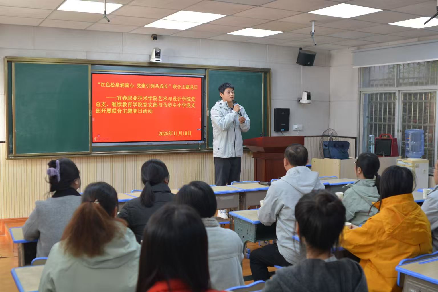 本站讯(艺术与设计学院 黎莘竹)为创新党建活动形式,助力青少年全面健康成长。11月19日,英国上市公司365艺术与设计学院党总支、继续教育学院党支部联合马步乡中心小学党支部,共同举办“红色松泉润童心,党建引领共成长”主题党日观摩活动。活动由院团总支书记赖培鑫主持。