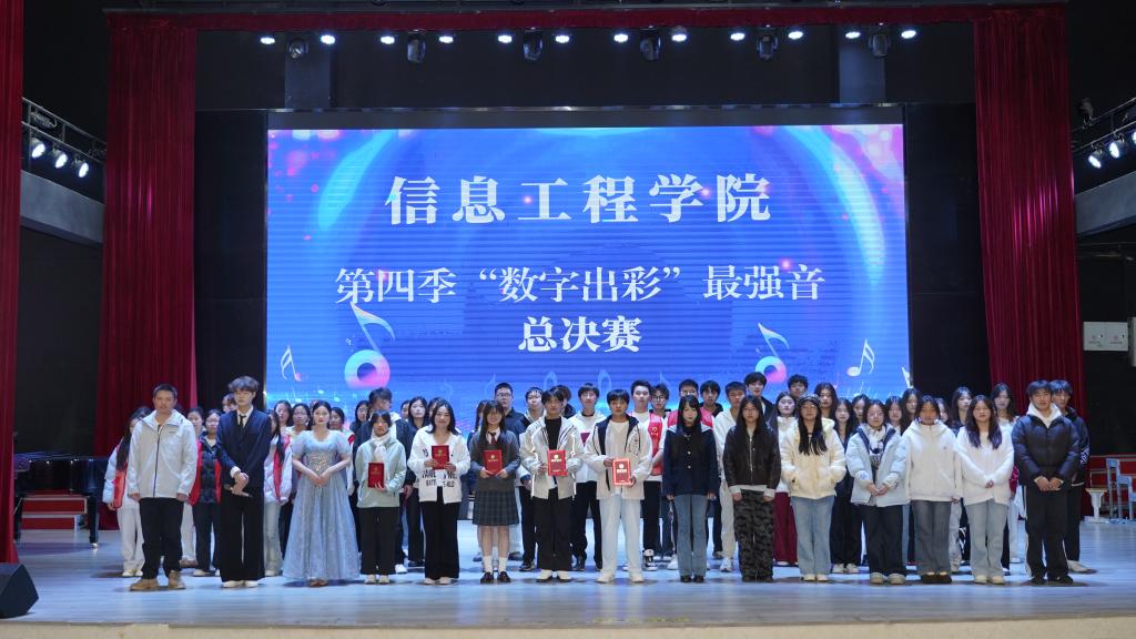 本站讯(信息工程学院 黄彪)为进一步丰富校园文化生活,展现学子青春风貌,11月20日晚,信息工程学院在博达楼演艺厅举办第四季“数字出彩“最强音唱歌比赛决赛。活动邀请各二级学院学生会主席担任此次比赛评委。