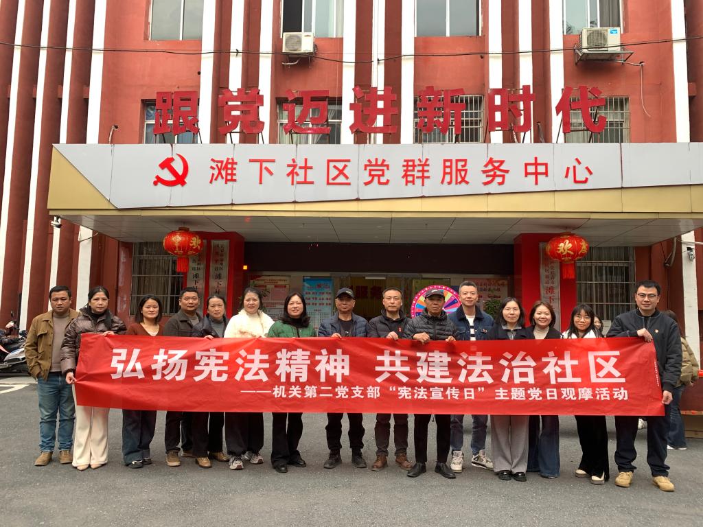 本站讯(机关第二党支部 胡倩)在第十二个“国家宪法日”之际,为深入践行“双进双服务”工作机制,推动党支部和党员下沉社区、服务群众,12月4日,机关第二党支部走进滩下社区,开展了以“弘扬宪法精神 共建法治社区”为主题的主题党日观摩活动。