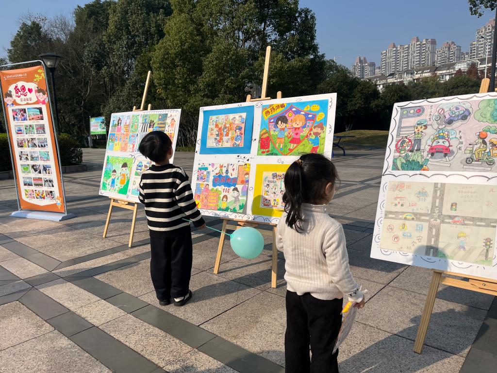 活动围绕安全教育、亲子互动与幼小衔接等内容展开,孩子们凭游戏券参与各项活动,每完成一项即可获得奖章,最终凭奖章兑换精美奖品。现场,一幅幅由幼儿园孩子们亲手绘制的安全主题宣传画格外引人注目。围绕消防安全、防溺水、防拐骗、交通安全等主题,孩子们用稚嫩的笔触描绘出对安全的理解与认知,吸引了众多社区居民带着孩子驻足观看。在“安全知识竞答”环节,孩子们通过随机抽取题目、现场作答的方式,巩固安全知识,提升自我保护意识。