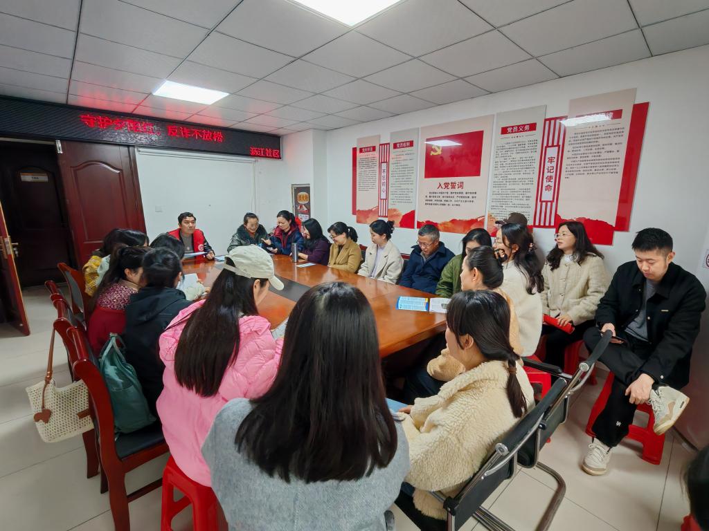 活动伊始,党员们在沥江社区党群服务中心集中座谈,认真聆听沥江社区书记结合社区实际带来的反诈案例专题分享。社区书记立足辖区近期发生的真实诈骗案件,细致分析了不同群体受骗的心理诱因,并逐一拆解诈骗分子的作案手法、话术套路和隐蔽陷阱。师生党员们认真记录、积极互动交流,结合师范专业优势,探讨适合向社区居民尤其是老年群体、青少年群体普及反诈知识的通俗化表达方式,为后续入户宣传做好充分准备。