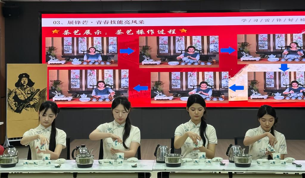 师生集中观看雷锋精神专题短片,重温雷锋同志“出差一千里,好事做了一火车”的感人故事。互动环节亮点纷呈:快板表演将雷锋精神、志愿行动与青年担当巧妙融合;两位优秀志愿者结合亲身经历,讲述雷锋精神的青春传承;点钞、烹饪、茶艺等专业技能展示,体现精益求精的敬业态度;深情朗诵传递出奋进“十五五”的庄严承诺。活动现场,同学们书写并分享志愿心愿,字里行间洋溢着青春热忱。刘小三老师寄语青年学子,要将雷锋精神融入日常、落在实处,以专业本领服务他人、奉献社会。