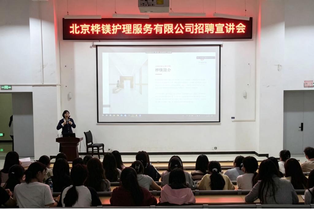 本站讯(护理学院 学生记者 林思彤 赖欣颖)为深化产教融合,精准对接行业人才需求,拓宽毕业生就业渠道,4月10日,护理学院在和济楼阶梯教室举办北京桦镁护理服务有限公司专场招聘宣讲会。院党总支书记吴少林、公司招生部经理及护理专业毕业生参会。