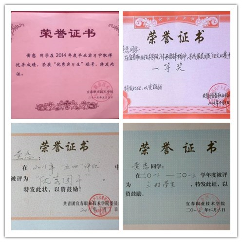 在校四年,黄恋没有睡过一次懒觉,周一至周五,每天六点半就起床晨练,晚上十点半之前就寝。学习上,黄恋每年都能拿奖学金,都能评先评优。她当了四年的宣传委员,每月一期的板报都能拿奖。上课期间手机上交,下课也不玩手机。积极参与知识竞赛,学习上有不懂的,主动虚心请教学习。