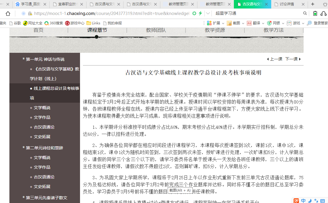 易滢老师拟定的古汉语与文学基础线上课程总设计及考核事项说明