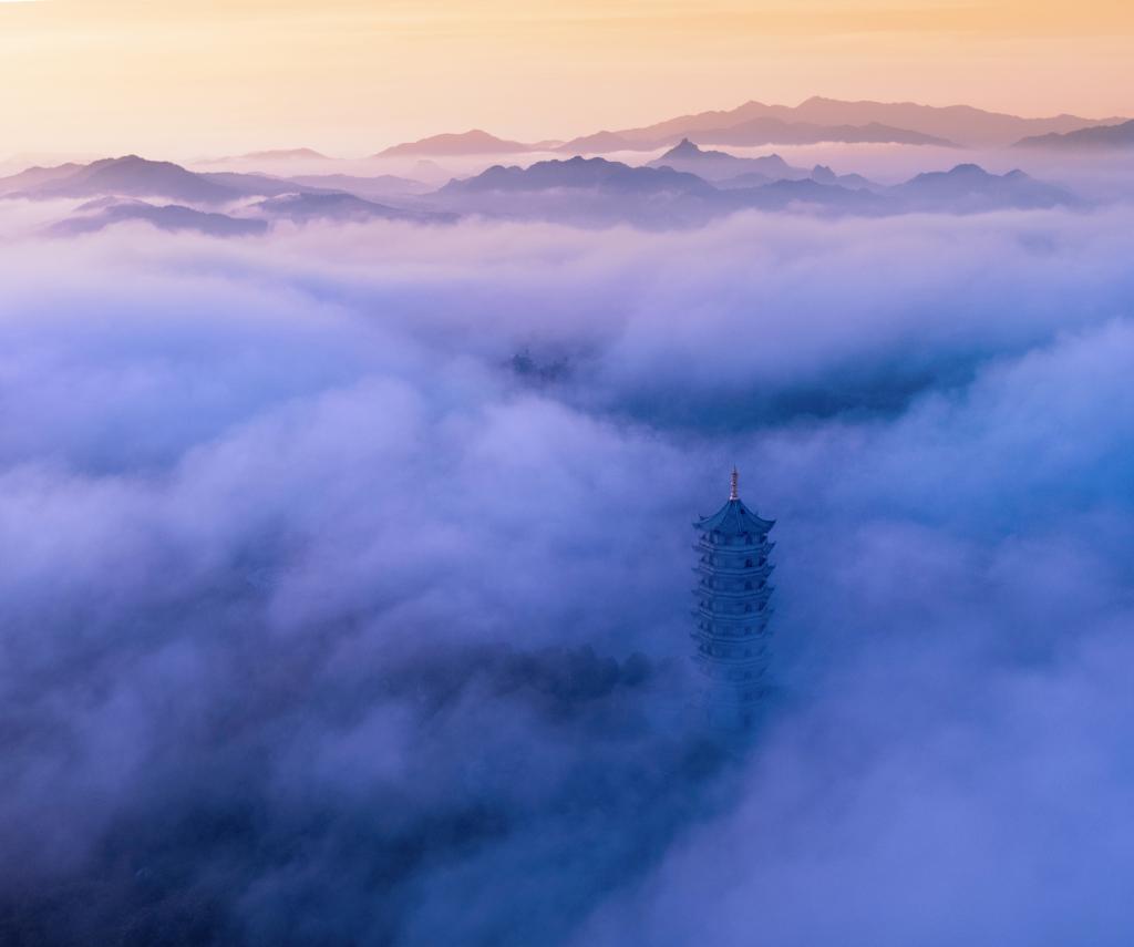宜春城区雷火塔周围云雾环绕犹似仙境