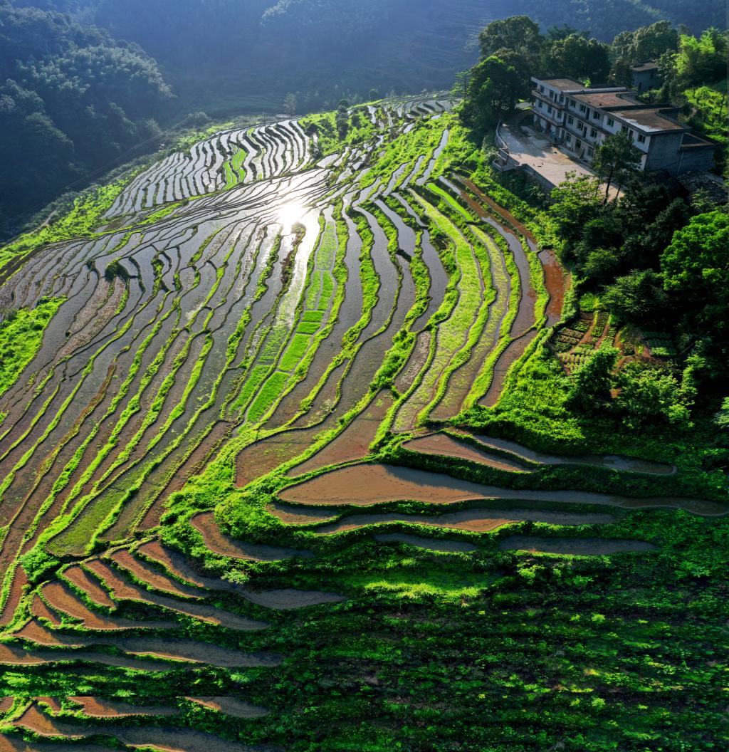 阳光照射下的梯田