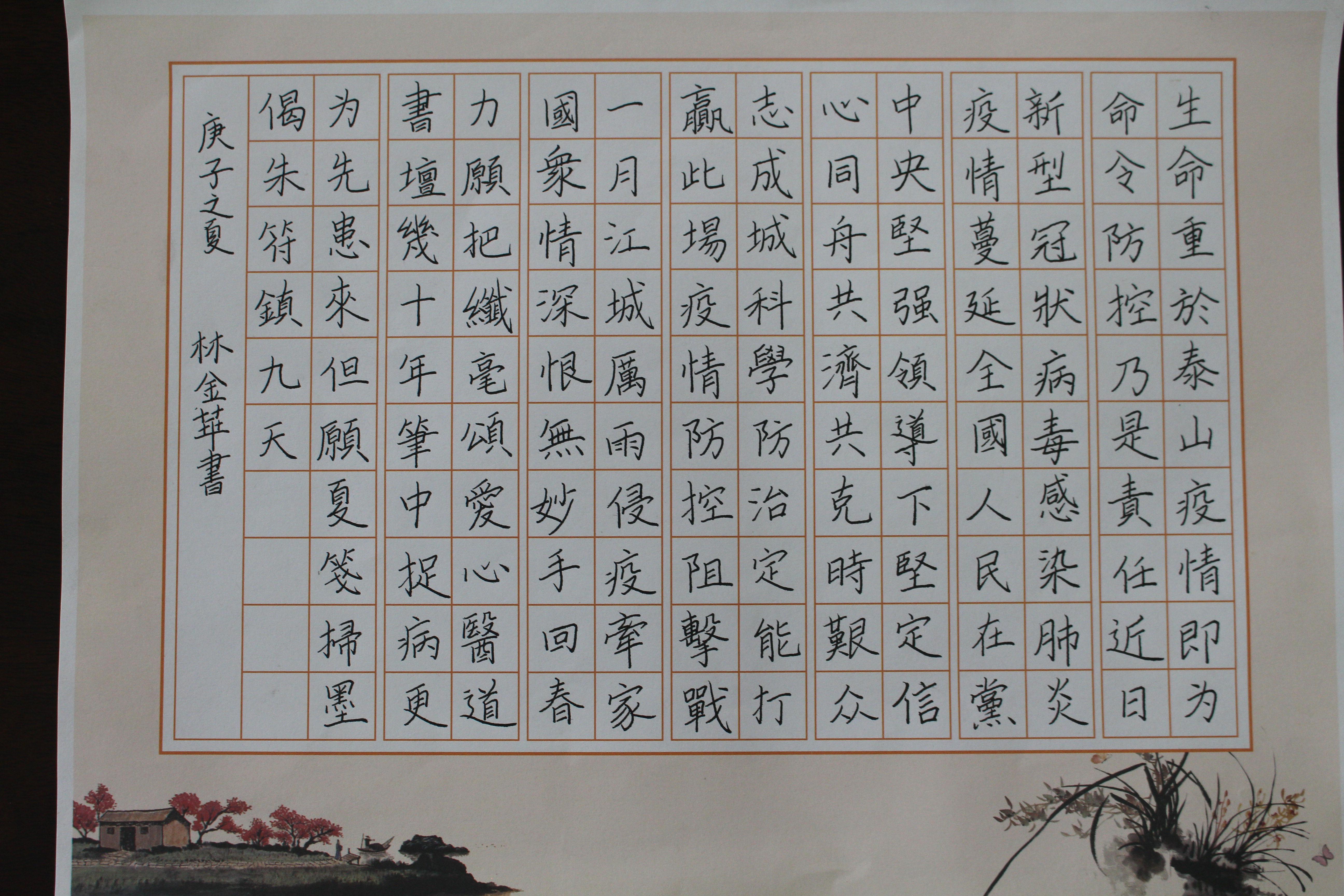 “笔墨中国”汉字书写共收到软笔和硬笔作品80余幅,含教师及学生作品。这些作品有的行云流水,用古诗词书写爱国情怀;有的笔底生花,用散文表达对故乡的热爱。经过评委慎重的评选,教师组李强、学生组陈仟孩等十余名师生将代表我院参加学校的复赛。
