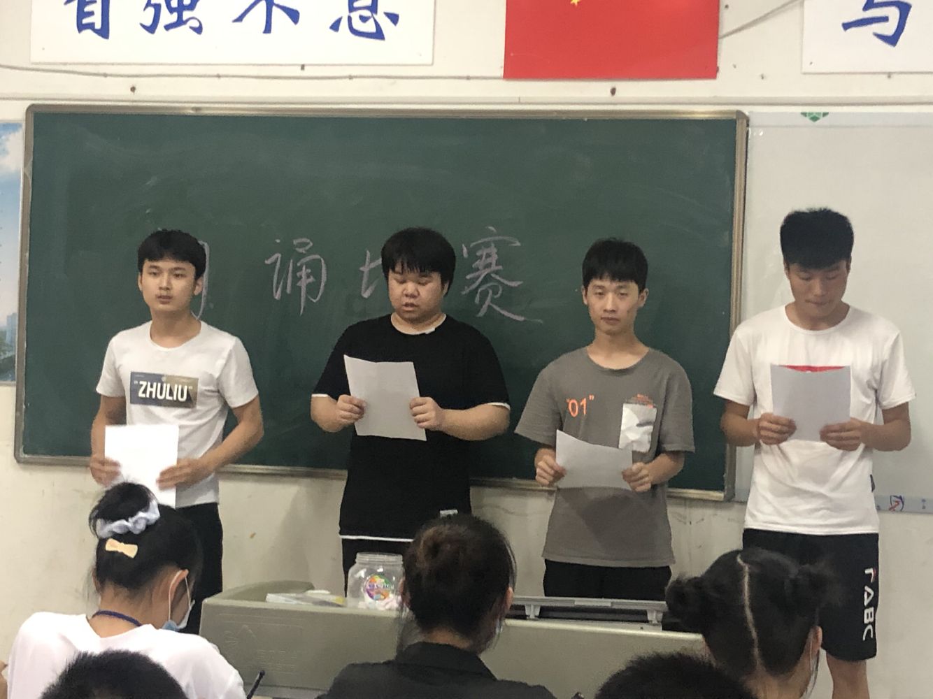 比赛现场,选手们以其铿锵有力的声音,充沛饱满的感情,自信大方的形象,感染了在场的每一位观众,获得了阵阵掌声。比赛内容和形式更是丰富多彩,有的朗读千古传颂的名篇,让我们在精简的语言当中解读古人的英伟事迹;有的表达思乡之情,轻悠的配乐中,吟诵者带领着我们走进诗人的心田,去领悟诗人心中的感情;有的歌颂青春,引导同学们追求青春,勇敢拼搏……