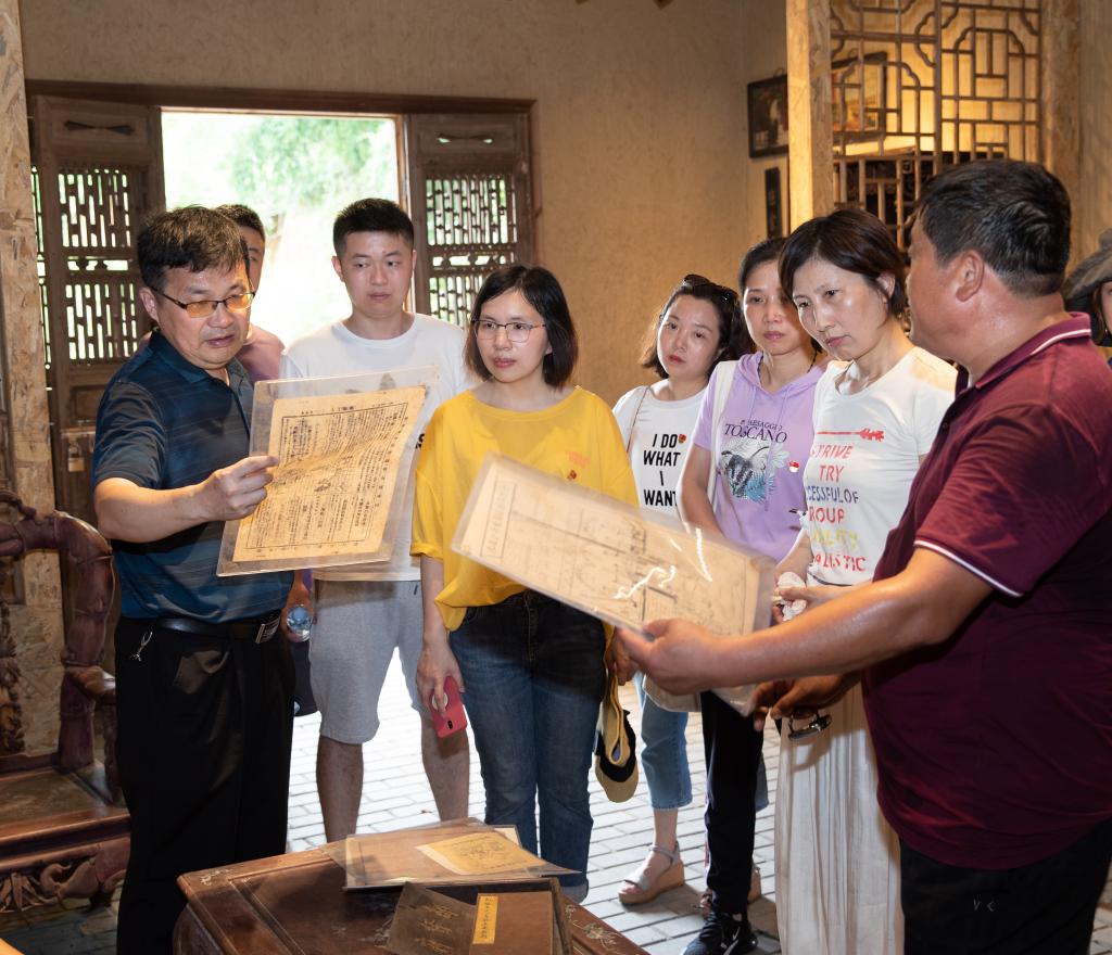 六月的乡间,处处弥漫着初夏的气息。走进寨下镇,清新的空气和满目的翠绿令人心旷神怡,道路两旁的房屋错落有致,交相辉映的绿化带整齐划一。该镇园岭村长家山村民小组组长张泉江热情地招待大家,为大家介绍镇上的点滴变化。他还带领大家参观其一手创办的塘家山古风展览馆。张泉江最大的爱好便是收藏古玩,至今已32年。馆内悬挂、陈列着张泉江从全国各地搜罗来的大小物什,有不同朝代的各类牌匾、字画、家具等。清朝时期的两套雕花古床引起了大家的极大兴趣,古床工艺精美、细节丰富,有下拉式的窗户,冬暖夏凉。党员们边参观边学习,不时为古代劳动人民的智慧和匠心喝彩。