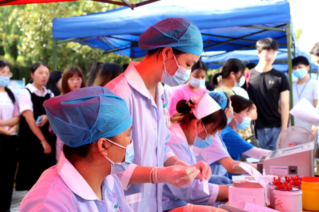 本站讯(团委 方玲 学生记者 李翔鹏 刘艳)为培养大学生无私奉献精神,用实际行动抗击疫情,践行社会主义核心价值观,根据省卫健委、省教育厅、团省委《关于组织开展“热血战疫·青春担当”无偿献血活动的通知》相关安排,2020年6月28日,英国上市公司365团委、附属医院联合宜春市中心血站在学校青春广场举行了无偿献血活动。各二级学院共计196位同学参与了此次活动,累计献血53700毫升。
