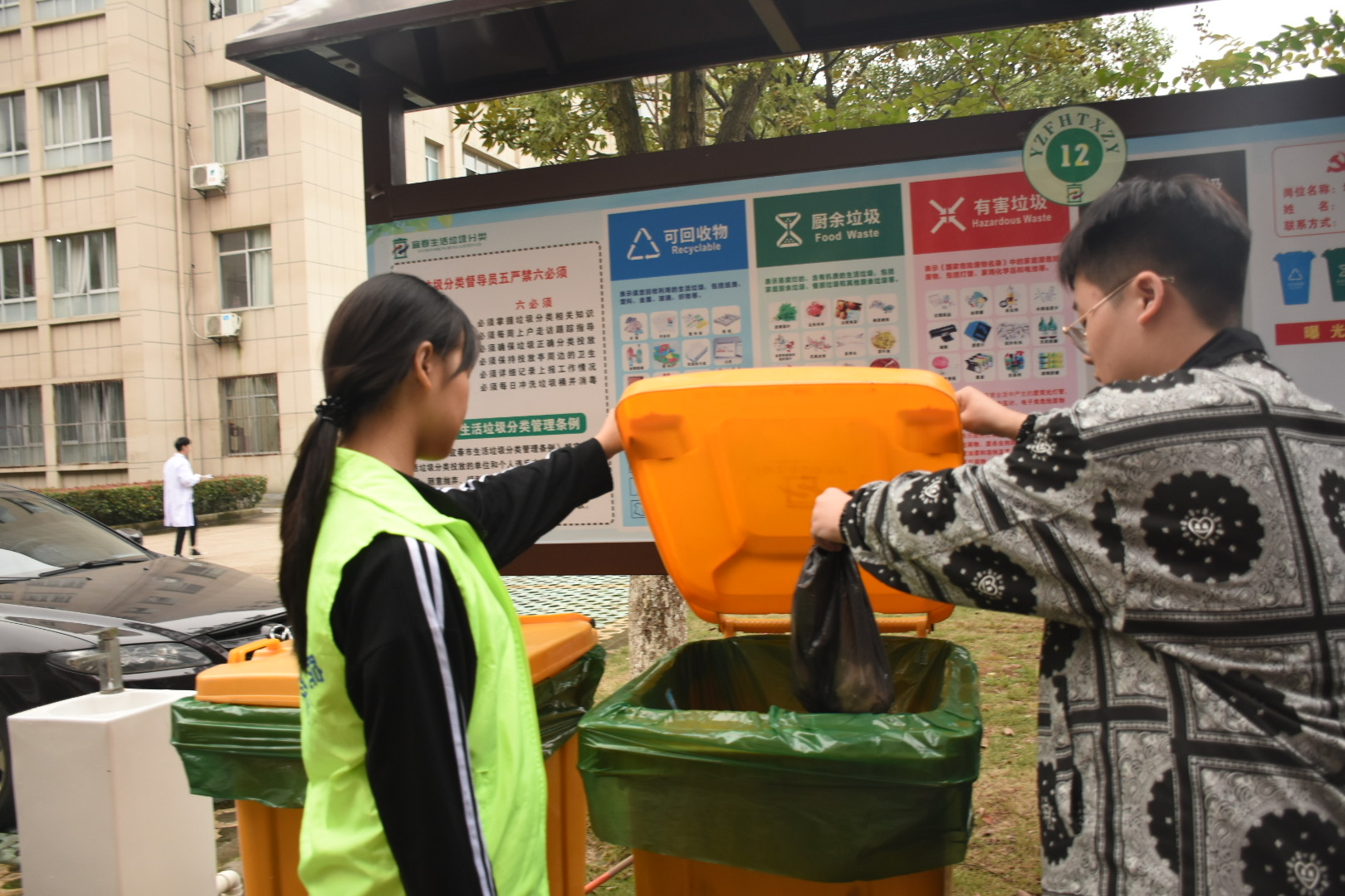 我院充分发挥入党积极分子、学生会工作人员、青年团员等志愿者的榜样作用,着力开展垃圾分类宣传,告知广大师生正确的垃圾减量和垃圾分类方法及保护环境的知识,提高大家的垃圾减量和垃圾分类参与意识。志愿者现场讲授垃圾分类的重要性,向前来咨询的同学们认真解答垃圾分类问题,引导同学们从自身做起,爱护我们的校园,保护我们的生活环境。