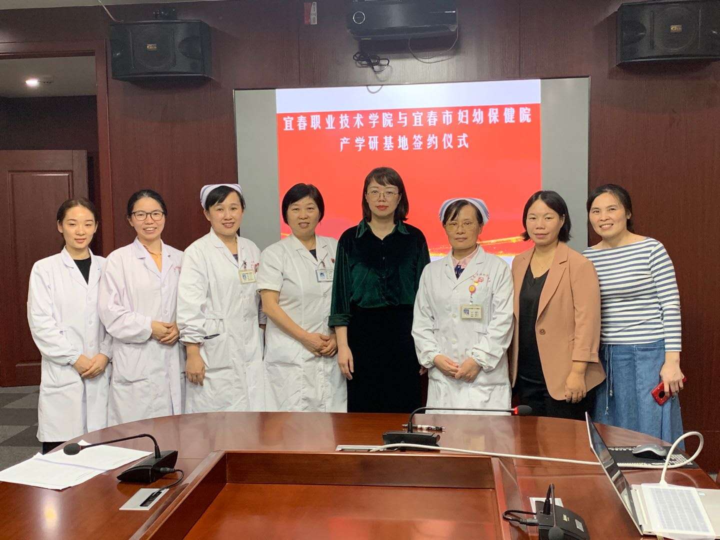本站讯(护理学院 刘爱珍)为进一步深化校企合作,提升人才培养质量。9月24日下午,宜春市妇幼保健院副院长杨欢秀与护理学院院长周俊杰就共建产学研基地签订了合作协议。宜春市妇幼保健院护理部主任傅丽萍、医务科主任万永珍、妇产科护士长杨璠及护理学院党总支副书记易国萍、妇产科教研室主任刘爱珍等人参加了签约仪式。