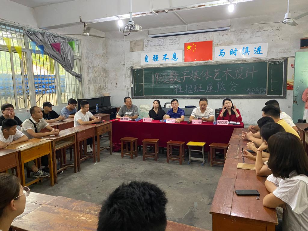 本次座谈会是19级数字媒体艺术设计(广告方向)社招班全班同学,班主任及我院领导第一次真正意义上的见面。在座谈会上,罗平书记首先就学院及专业进行介绍,大概了解了同学们的学习情况,三年的课时计划等;付菲副院长则对同学们表示鼓励,希望同学们能够能够加深和系院的联系;而郑立波老师则为同学们介绍了本学期的课程安排,本周末的课时计划等,对同学们上个学期的考试情况,补考相关事宜进行了详细的讲解。接着,班主任林永纯老师让同学们大胆发言,在会上提出自己的疑问,老师们都一一进行解答。为了加深同学们之间的联系,林永纯老师特让同学们进行自我介绍。经过短暂的自我介绍环节以后,同学们之间都有了一个大概的了解。最后,由高华兵院长做总结发言,高院长希望同学们在学校中真正学到东西,提升专业技能,在此期间也能遵守我院的规章制度,同时也衷心祝愿同学们能够有一个美好的校园生活,留下珍贵的记忆。