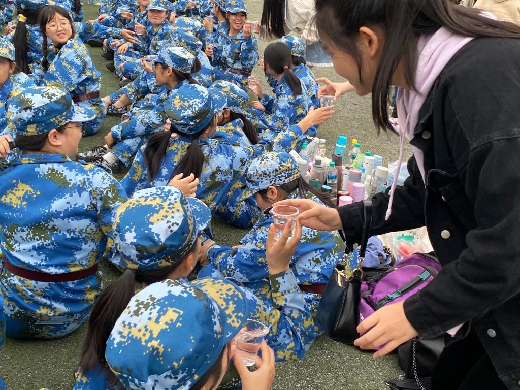 下午4点,志愿者们准时到达田径场。烈日当头,志愿者们准备好一杯杯水,趁新生军训休息时间,送至他们手中。正所谓杯水情深,小小的一杯水,犹如军训时光的一阵清风,新生们感受到了学长学姐们的热心关爱。接着,志愿者们与新生进行交谈、积极为他们解答疑难,帮助新生尽快适应新的环境、融入新的集体。为了感谢学长学姐们,新生班级同学唱起了军歌,活动在一片欢声笑语中圆满结束。