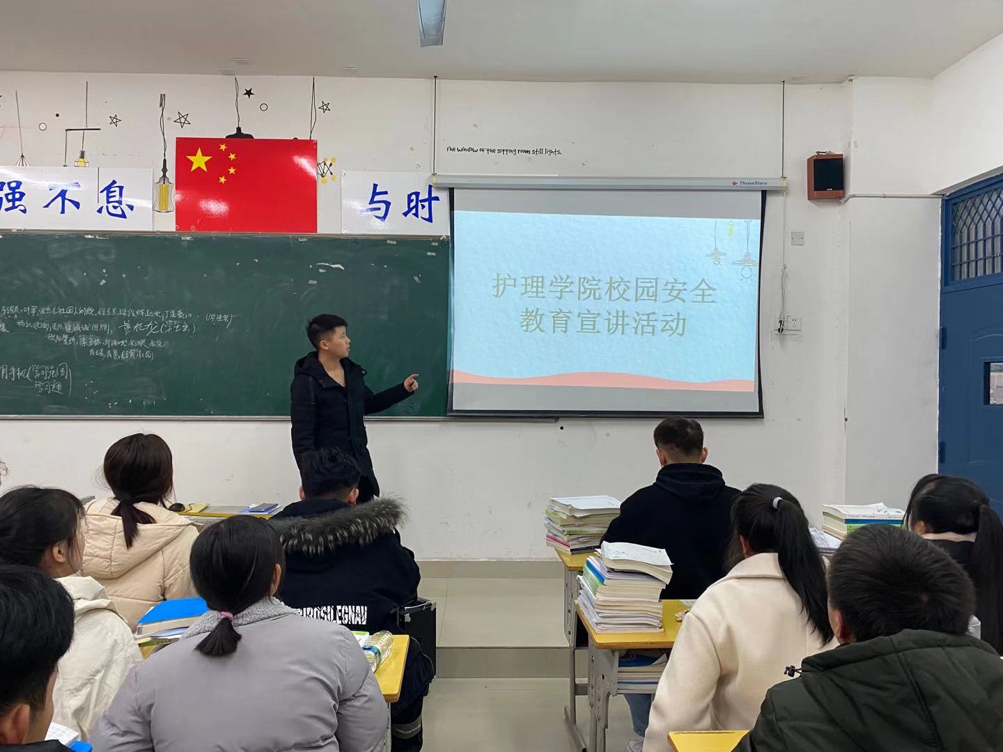 当晚7点,由44名入党积极分子组成的宣讲队来到各个班级,给同学们上了一堂安全教育宣讲课,为同学们讲解日常生活中的用电知识,提醒他们在教室或宿舍里特别要注意用电安全,严禁使用大功率电器。积极分子们还与师生在课堂上共同学习了电力安全急救知识,保障人身安全,避免不必要的安全事故发生,师生们积极互动,宣讲课堂学习氛围极为浓厚。