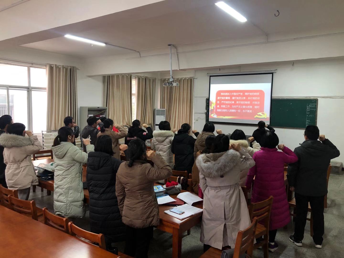 接着,党总支书记胡蓉带领全体党员深入学习了十九届五中全会精神、中央关于全面依法治国工作会议精神、中华人民共和国宪法、中华人民共和国民法典,并提出要求:全院上下要结合党的十九届五中全会精神,深入学习习近平总书记法治思想和中央关于全面依法治国工作会议精神,认真学习宪法和民法典,广大党员干部要结合所学内容,学有所思,学有所悟,认真学习,学深悟透,做学习宪法、尊崇宪法、维护宪法、运用宪法的模范。胡蓉还带领全体党员学习了当前疫情防控有关要求、2020年全市重点普及法律法规以及市委关于全面依法治市的决策部署和“七五”普法工作成就等有关内容。随后,胡蓉为过政治生日的党员送上生日贺卡,向他们致以温馨的祝福,党员们手持政治生日贺卡合影留念并畅谈生日感想;此后,胡蓉带领全体党员一起重温了入党誓词。