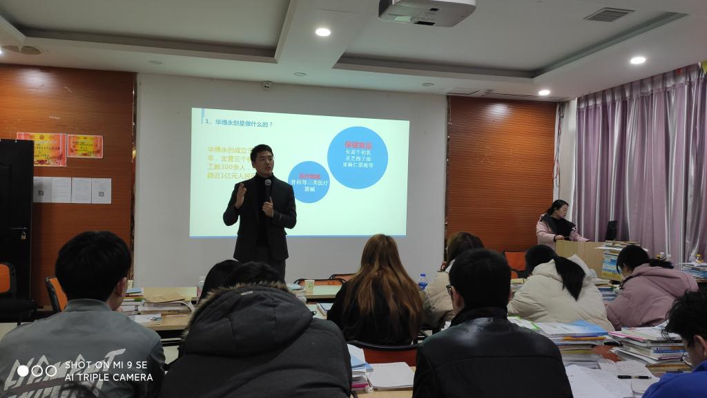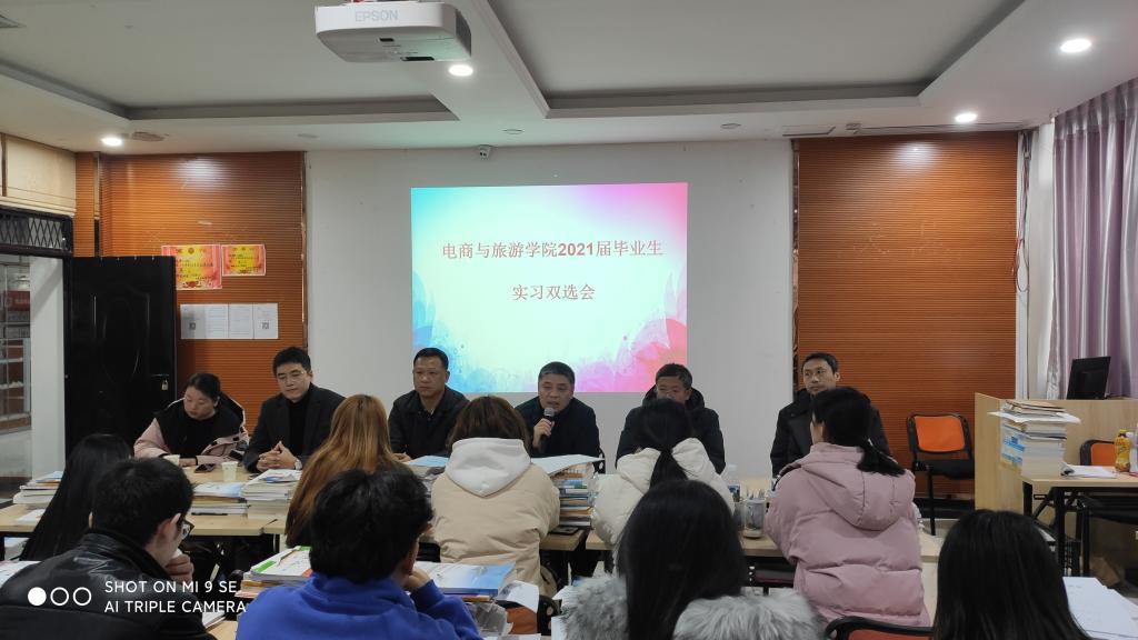 本站讯(电商与旅游学院 邹瑞)12月31日,电商与旅游学院在赣西电商创新创业人才孵化基地举行2021届毕业生顶岗实习双选会。出席本次实习动员及双选会的领导嘉宾有电商与旅游学院院长陈洪、党总支书记谭育林、党总支副书记陈小保、南京华博永创医药生物科技有限公司王勇董事长及公司区域负责人唐笑先生等,会议由院党总支书记谭育林主持。