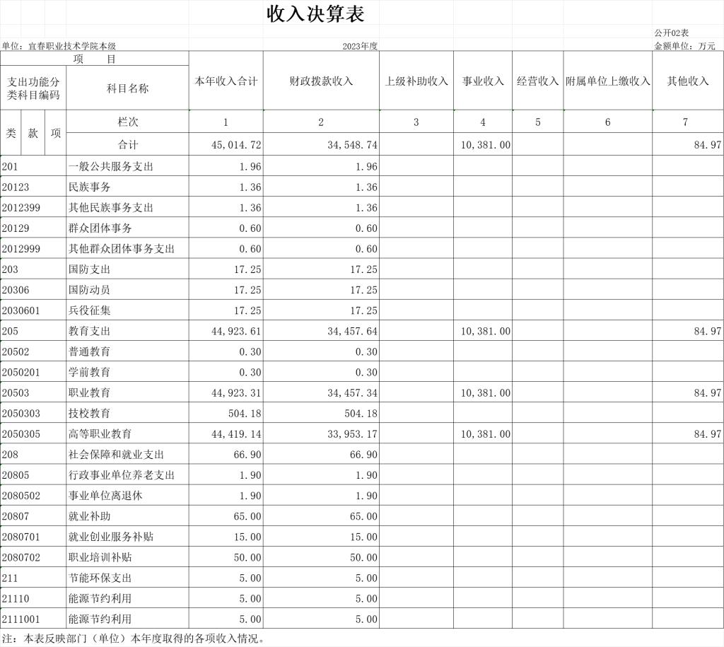 二、收入决算表