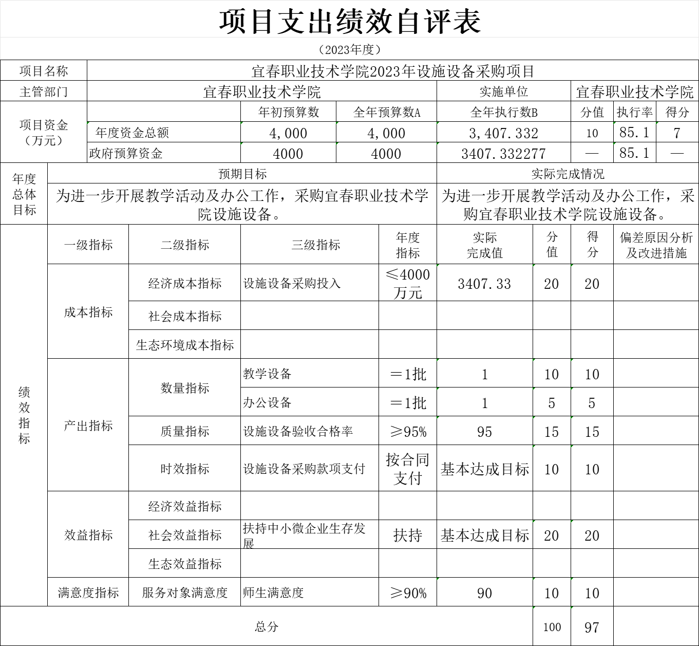 (三)教育支出年初预算数为27361.62万元,决算数为34457.64万元,完成年初预算的125.93%,预决算差异主要原因:为满足新校区教学需求进行了大量设备采购。